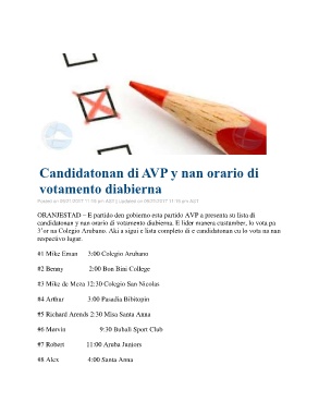candidatonan y nan orario di votamento diabierna. E lider manera custumber, lo vota pa