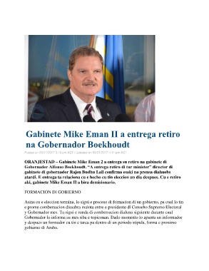 ORANJESTAD – Gabinete Mike Eman 2 a entrega su retiro na gabinete di