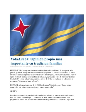 HILVERSUM – Mas y mas Arubiano ta kita di e tradicion di famia di vota pa un solo