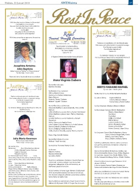 Jean Pierre, Jason, Glenrick, Oswin, Stacey, Julie, Acto di entiero ta tuma lugar diamars 23 di januari Adres pa condolencia ta na Aurora Funeral Home
