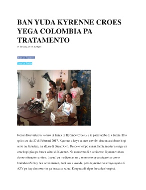 splica cu dia 27 di Februari 2017, Kyrenne a haya su mes envolvi den un accidente hopi