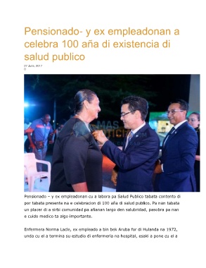 por tabata presente na e celebracion di 100 aña di salud publico. Pa nan tabata