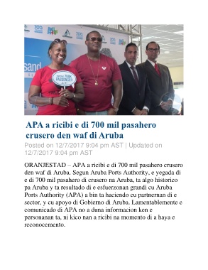e di 700 mil pasahero di crusero na Aruba, ta algo historico