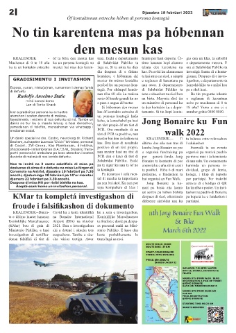 di Cocari, ZW-Groep, Kas Flamboyan, direktiva, positivo di un tèst propio, lomba Jong Bonaire no por Funwalk ta un evento