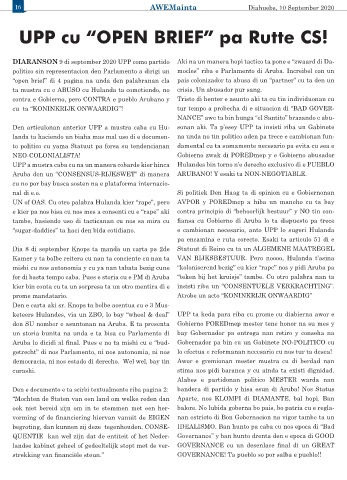 DIARANSON 9 di september 2020 UPP como partido Aki na un manera hopi tactico ta pone e “zwaard di Da-