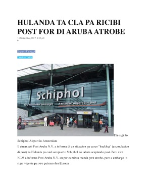 di post) na Hulanda pa cual aeropuerto Schiphol no tabata aceptando post. Pero awe