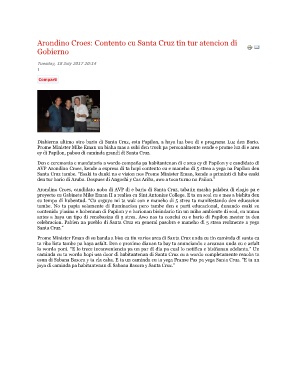 Arondino Croes: Contento cu Santa Cruz tin tur atencion di