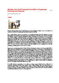 Minister Juan David Yrausquin bon ricibi na Wageningen