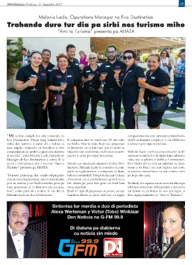 Turismo” presenta pa AHATA. tination, Melanie Lacle ta contento di com- tenan y na final, ora nan regresa nan pais,