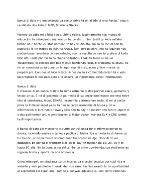 banco di data y e importancia pa sector priva ta un aliado di enseñansa,” segun