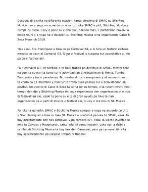 Pa e carnaval 63, en berdad, e ta hopi trabao pa directiva di SMAC. Mester tene