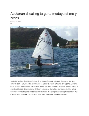 competi den e CYC Regatta International. Esaki ta segun e fuente 297 Sports. Durante