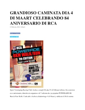 Run & Fun-Walk. E aña aki e fecha ta diadomingo 4 di Maart y salida ta 6:30 di mainta