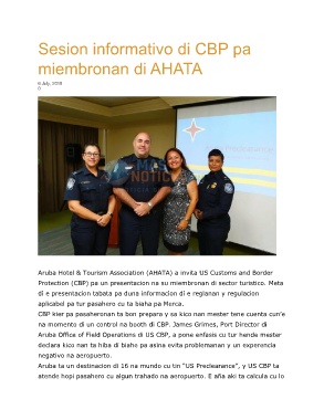 Protection (CBP) pa un presentacion na su miembronan di sector turistico. Meta