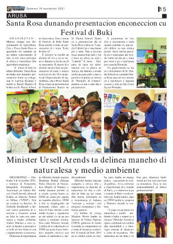 ORANJESTAD -- Dia- pa Minister Arends manera dio ambiente. ba, pero Aruba su energy bon guia desaroyo facil-