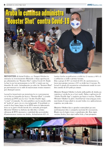 MINISTER di Salud Publico, sr. Dangui Oduber ta henter Aruba su poblacion a ricibi tur 2 vacuna y 66% di