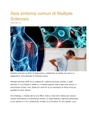 Multiple sclerosis ta dificil di diagnostica y solamente un dokter por duna un