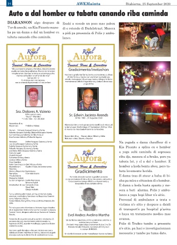 26 di September 2020 di 2’or pa 4’or di atardi na Aurora di transport’e pa hospital p’asina