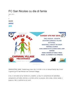 ORANJESTAD (AAN)- Diadomingo awor dia 6 di Mei lo tin un annual family day event