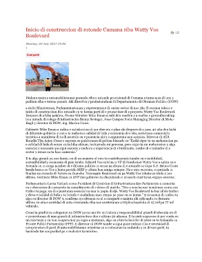trafico ta pega; un di e puntonan esencial cu nan ta papia di dje. Watty Vos Boulevard ta bay alivia trafico