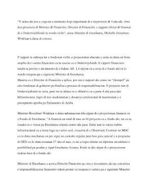 tambe ta provee e documento di e balans Afl. 1.4 miyon cu a resta di e fondo aki cu lo