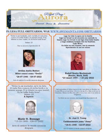 Nos ta anuncia fayecimento di: Cu dolor na nos curason, nos ta anuncia