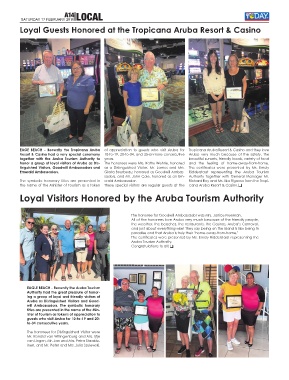 honor a group of loyal visitors of Aruba as Dis- The honorees were Mrs. Kathy Wehrle, honored and the feeling of home-away-from-home.