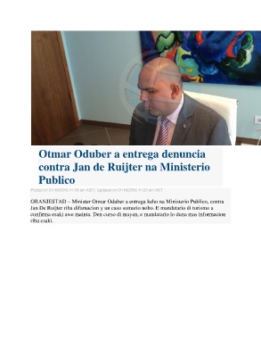 ORANJESTAD – Minister Otmar Oduber a entrega keho na Ministerio Publico, contra