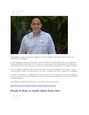 otro hotelnan renobra na Aruba, Raymond ta bolbe bek cu mas di 20 aña di experencia den e disciplina di finansas.