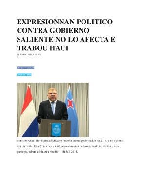Minister Angel Bermudez a splica cu ora el a drenta gobernacion na 2014, e no a drenta