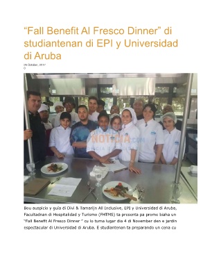 espectacular di Universidad di Aruba. E studiantenan ta preparando un cena cu