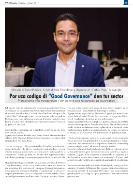 Governance” no solamente den deporte pero tambe den salubridad. situacion local”, asina Minister Schwengle a expresa.