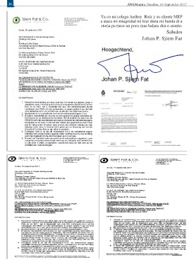 16 AWEMainta Diasabra, 16 September 2017 Ya cu mi colega Anthoy Ruiz y su cliente MEP a ataca mi integridad mi kier duna mi banda di e storia pa trece un poco mas balans den e asunto. Saludos Johan P. Sjiem Fat