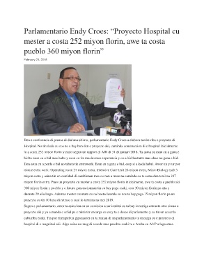 Parlamentario Endy Croes: “Proyecto Hospital cu