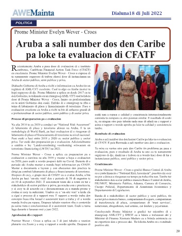 regimen di AML/CFT excelente. Cual ta algo cu Aruba mester ta