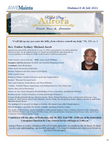 Father Jacob is survived by his: Wife: Avlyn Jacob-Williams