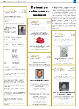 Adres pa condolencia: Aurora Funeral Home, Diamars, 29 augustus 2017 Angela, secretaria Vicky, Koningin Wilhelmina Fonds y