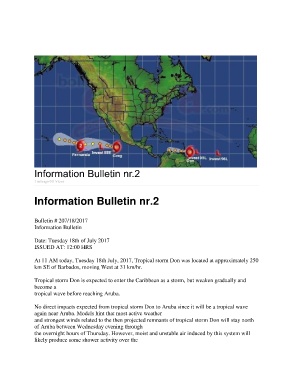 No direct impacts expected from tropical storm Don to Aruba since it will be a tropical wave
