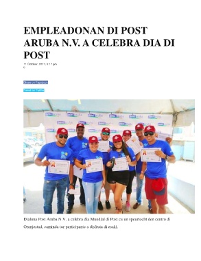 Dialuna Post Aruba N.V. a celebra dia Mundial di Post cu un speurtocht den centro di