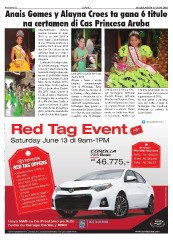 Durante lunanan di April Aruba 2015. sah Verstappen; Juffrouw nan a entrega nan corona na