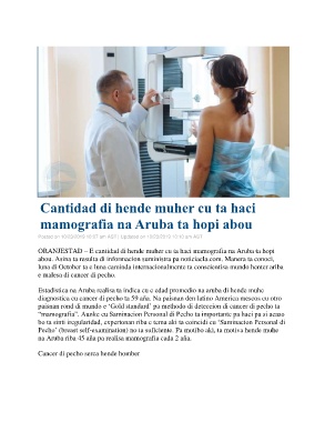 na Aruba riba 45 aña pa realisa mamografia cada 2 aña.