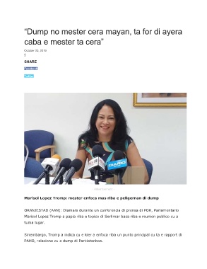 Marisol Lopez Tromp: mester enfoca mas riba e peligernan di dump