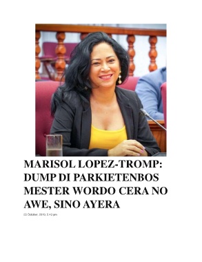 MARISOL LOPEZ-TROMP: DUMP DI PARKIETENBOS MESTER WORDO CERA NO AWE, SINO AYERA 23 October, 2019, 5:43 pm 86