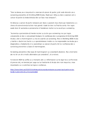 cancer di pecho ta keda detecta den un fase mas tempran”.