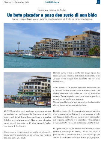 di bolbe ayera dialuna atardi. Nan a tuma direccion nan ta perde. Por bien por ta cu cualkier submarine por
