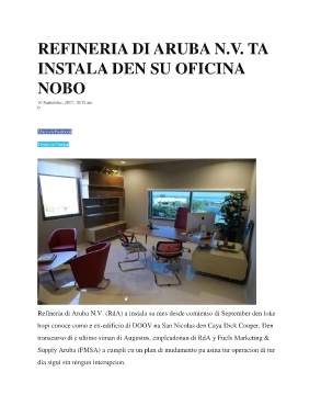 Refineria di Aruba N.V. (RdA) a instala su mes desde comienso di September den loke