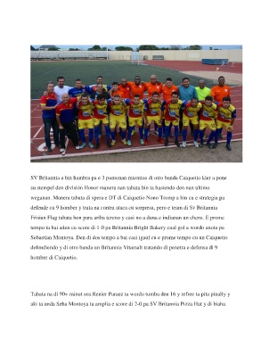 SV Britannia a bin hambra pa e 3 puntonan mientras di otro banda Caiquetio kier a pone
