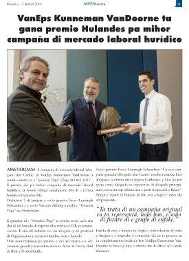 wòrdo coroná cu e “Gouden Toga” (Toga di Oro) 2017. spera como abogado cu experencia òf abogado principi-