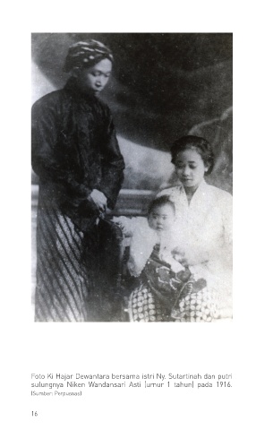 Foto Ki Hajar Dewantara bersama istri Ny. Sutartinah dan putri sulungnya Niken Wandansari Asti (umur 1 tahun) pada 1916. (Sumber: Perpusnas) 16