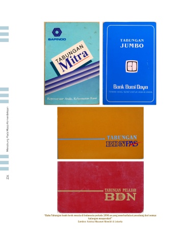Menabung Pada Masa Kemerdekaan 234 “Buku Tabungan bank-bank swasta di Indonesia periode 1990 an yang memfasilatasi penabung dari semua kalangan masyarakat” Sumber: Koleksi Museum Mandiri di Jakarta